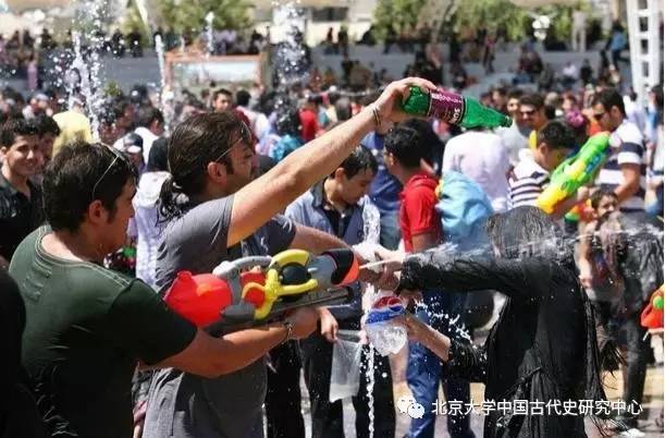 图1.夏季伊朗德黑兰人众庆祝Jashn-e-Tiregaan;与新年大净aabpaashaan不同,aabpaashaan在一些地区也指秋种求雨节日